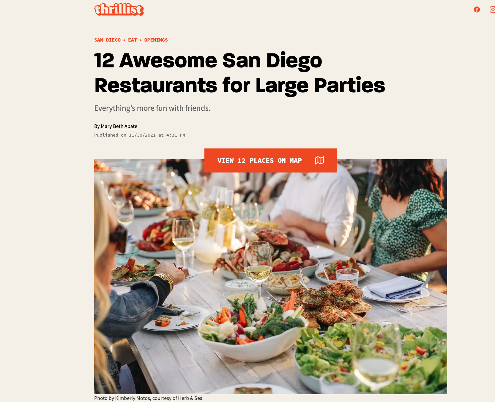 Thrillist: Awesome San Diego Restaurants for Large Parties