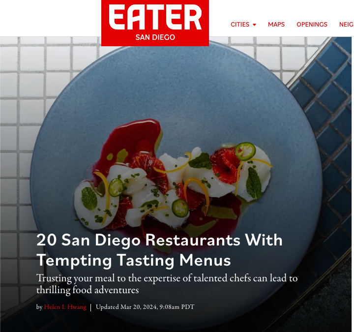 Eater: 20 San Diego Restaurants with Tempting Tasting Menus